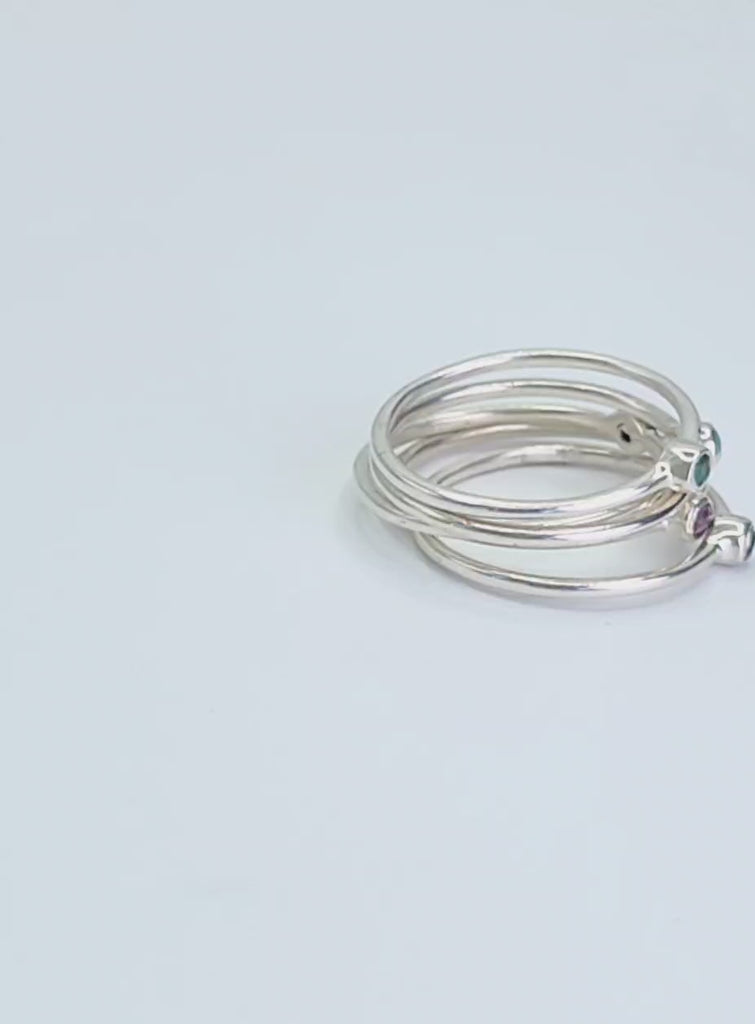 Sterling Silver Stacking Ring Set – Onyx, Citrine, Zircon