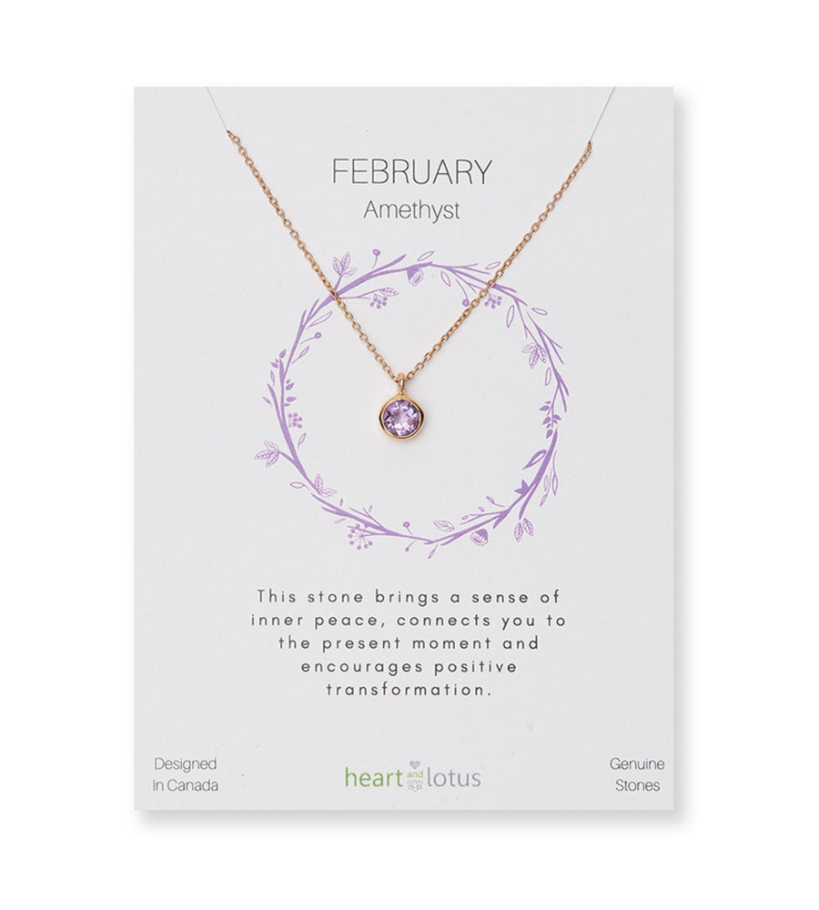 February Birthstone Necklace in Amethyst + Gold