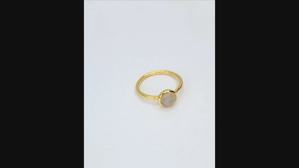 Rainbow moonstone is a powerful stone of intuition, feminine energy, and emotional clarity. This dainty gold vermeil ring features a luminous moonstone in a minimalist bezel setting—designed to be worn as a subtle daily talisman or stacked for intentional styling.